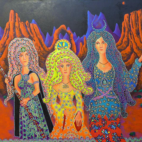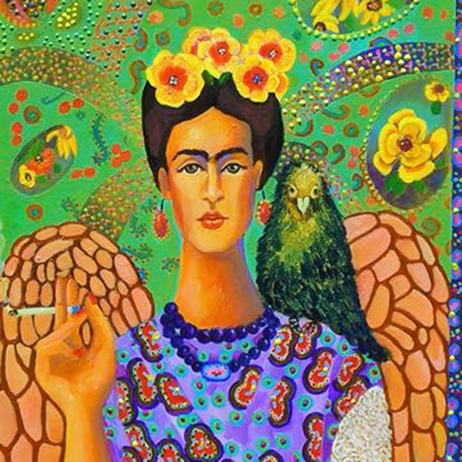 “Siento que la pintura me eligió para ser Artista Maga. Soy un Instrumento, porque no sé de dónde me dice al oído qué pintar y cuáles colores ir creando, realmente siento que voy con la corriente y flujo”. Tiene un sello entre el Realismo Mágico y el Surrealismo. Con mensajes ocultos que sólo ciertas personas logran entender, cuenta historias, mitos y sueños.